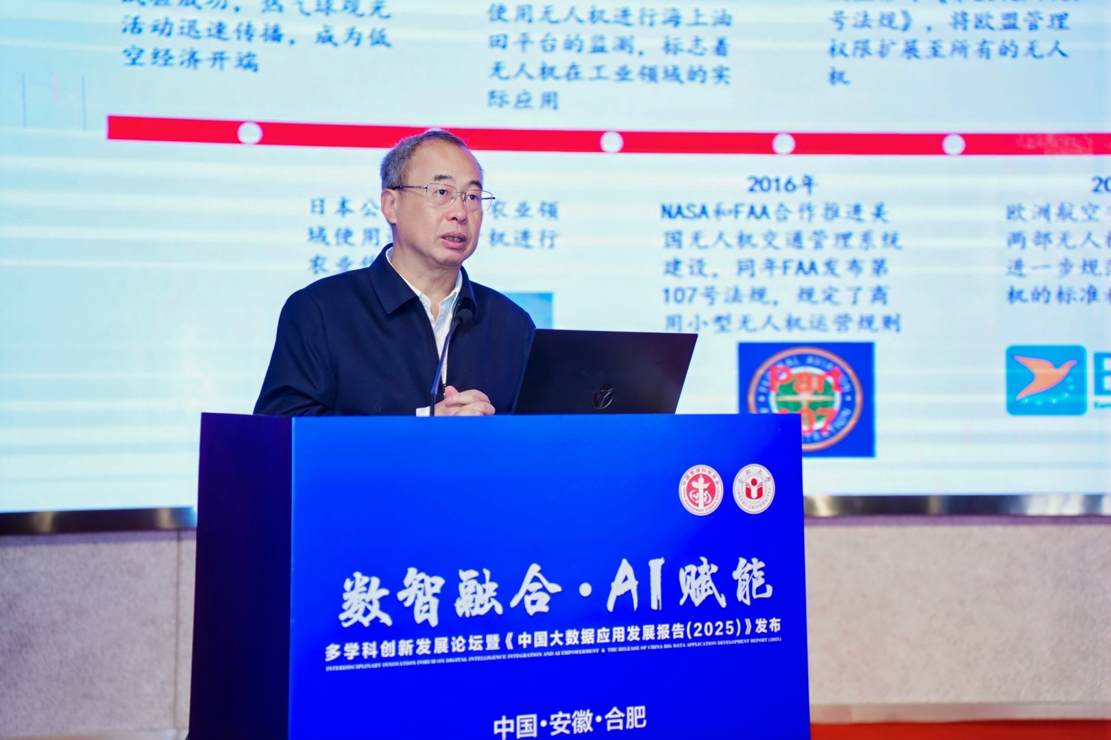 中国工程院院士、中国管理科学学会会长向锦武带来题为《智领低空,绿建未来:低空经济装备技术及发展》的专题报告,安徽省工业和信息化厅二级巡视员潘峰发表以《关注三工、应波逐浪》为题的演讲。合肥大学党委书记邬平川,合肥市数据资源局局长谢军等出席会议并致辞,合肥大学科研处处长胡坤宏主持活动。