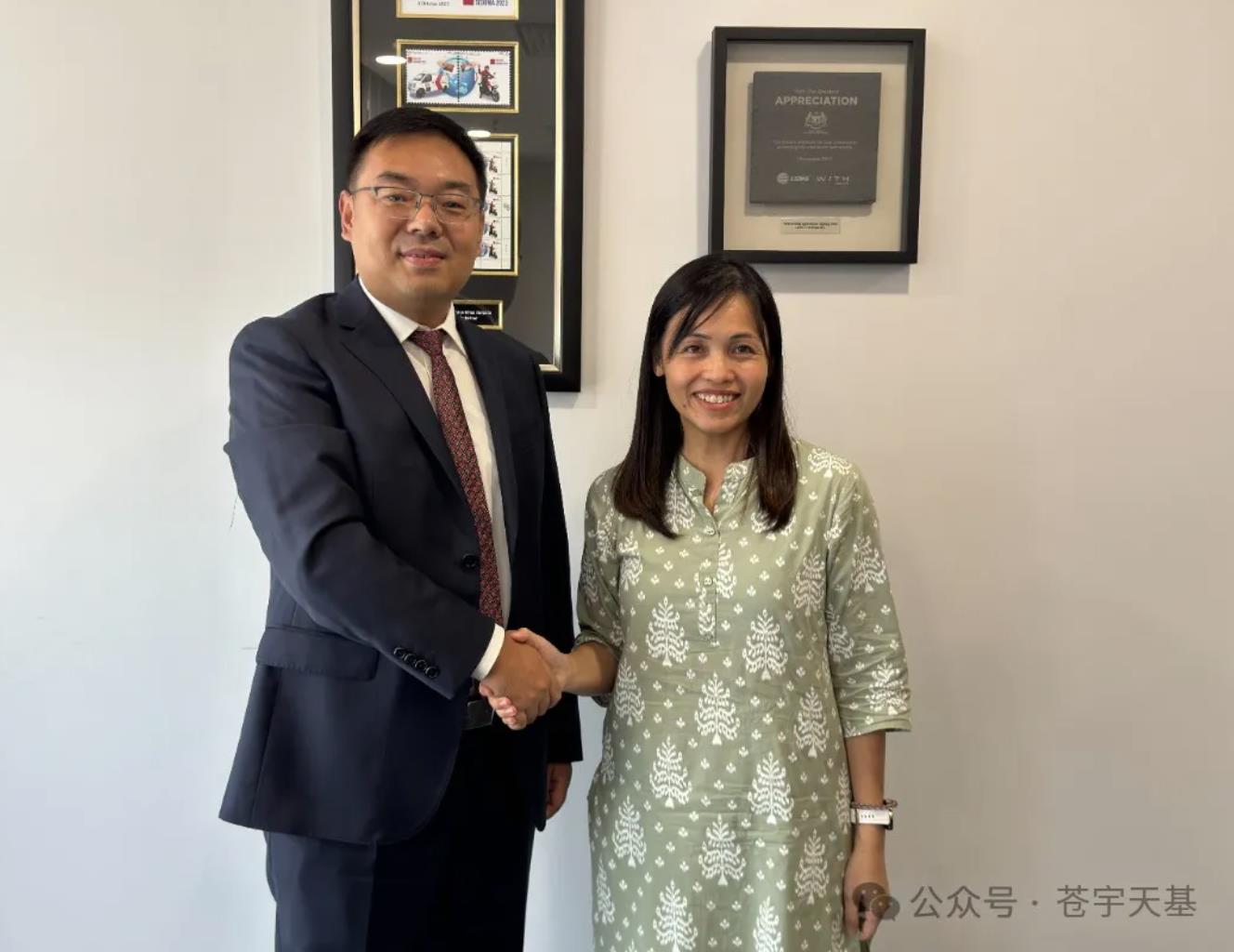 在签约前,马来西亚通讯部副部长张念群会见苍宇天基创始人、董事长刘巍。中国驻马来西亚大使馆科技参赞赵向东、马来西亚通讯部基础设施和应用司副司长Nazrol等出席签字仪式。