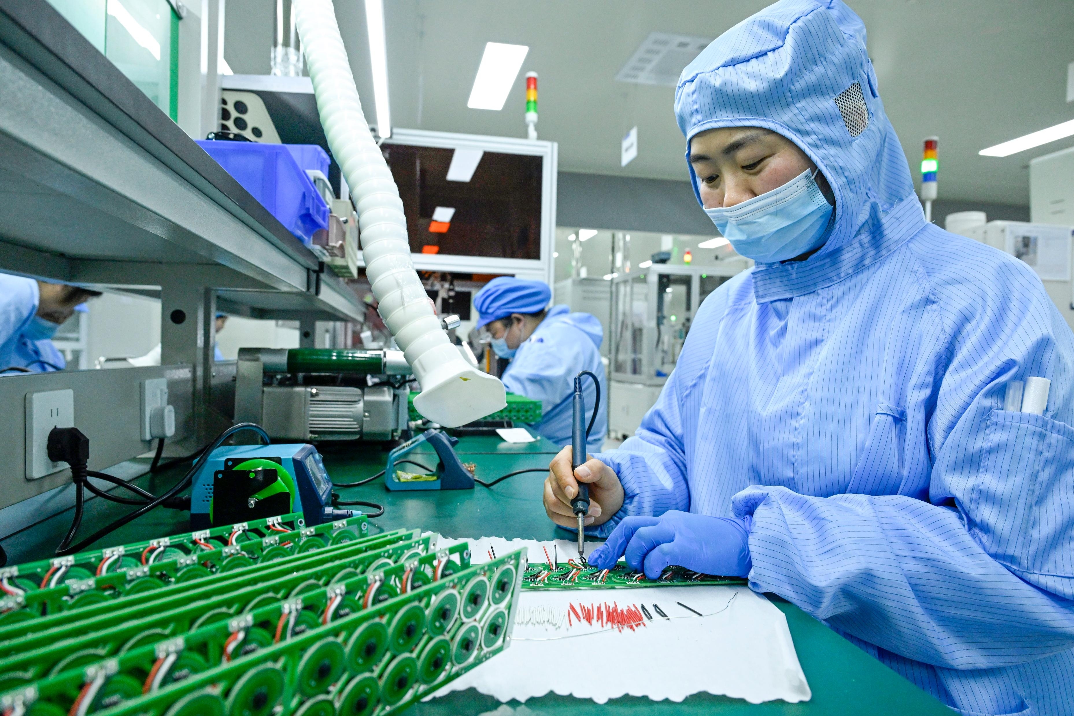 4月1日,位于合肥庐阳经济开发区的合肥胜脉传感科技有限公司传感器研发生产车间,技术人员在对汽车压力传感器内部零件进行焊接。本报通讯员 赵明 摄