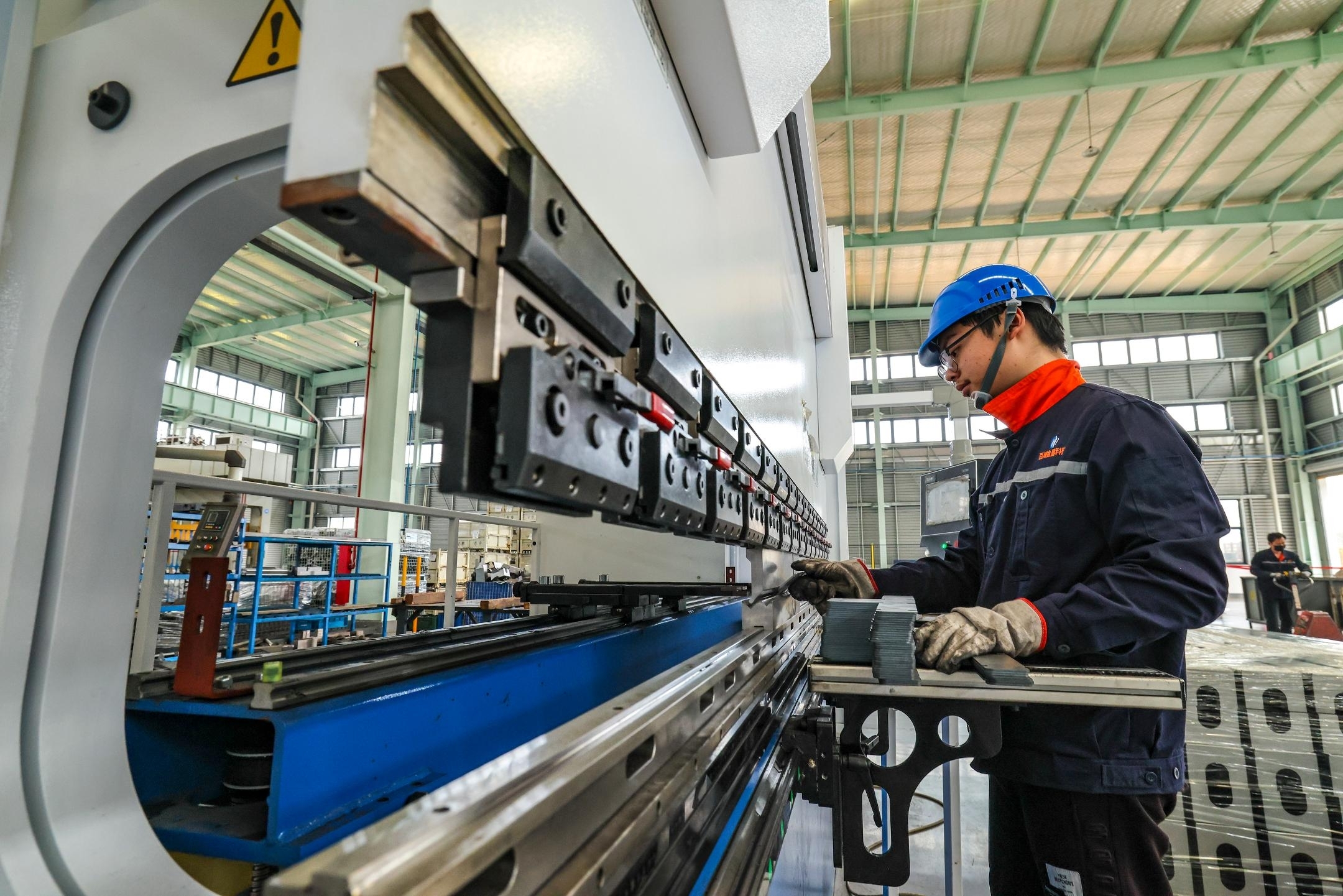 3月27日,位于当涂经开区的马鞍山市百川金属科技有限责任公司生产车间,工人在赶制新能源汽车高端部件产品。特约摄影 王文生 摄